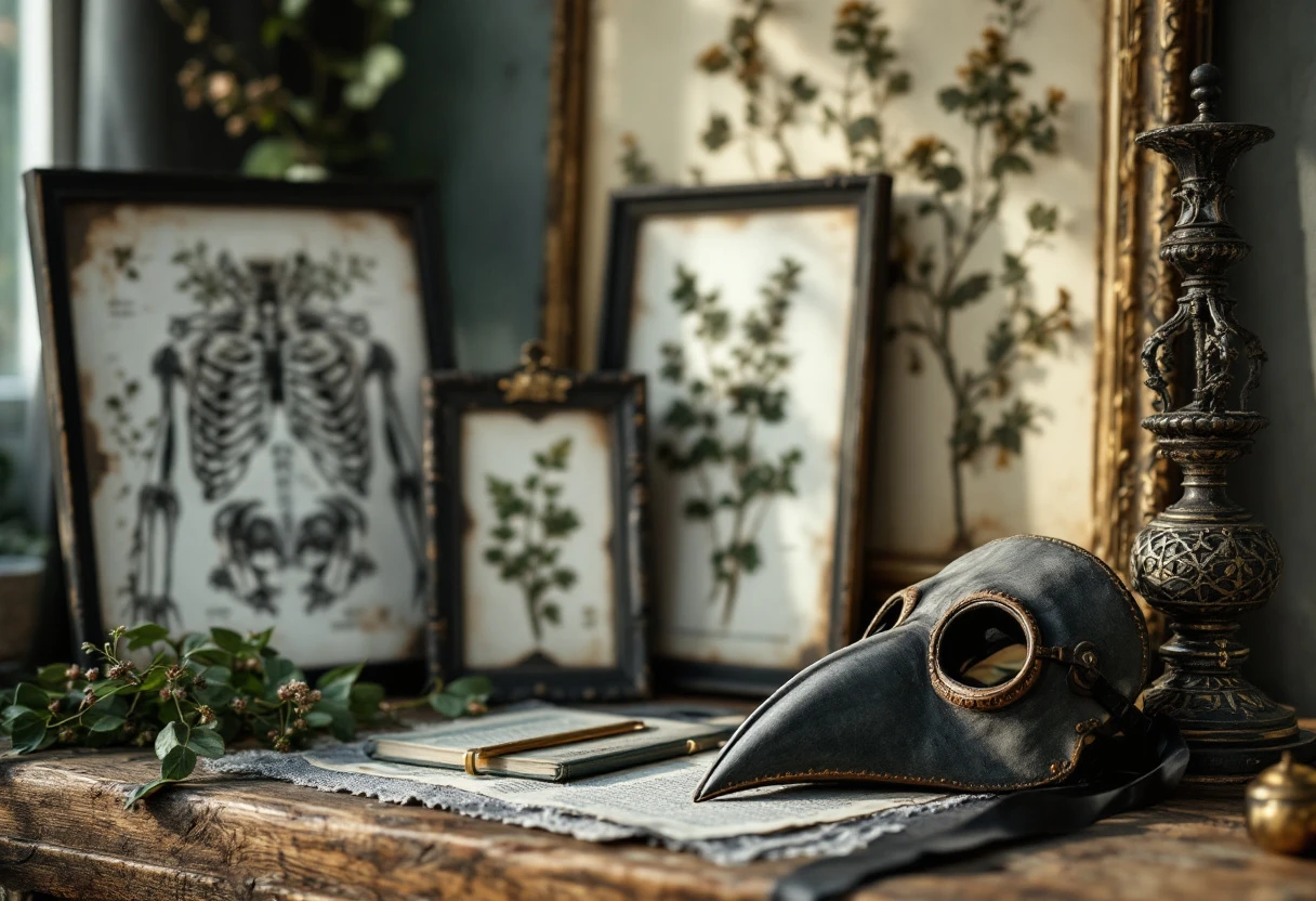 Mix & match gothique chic : comment associer cadres anatomiques, herbiers et masque de la peste pour une décoration unique